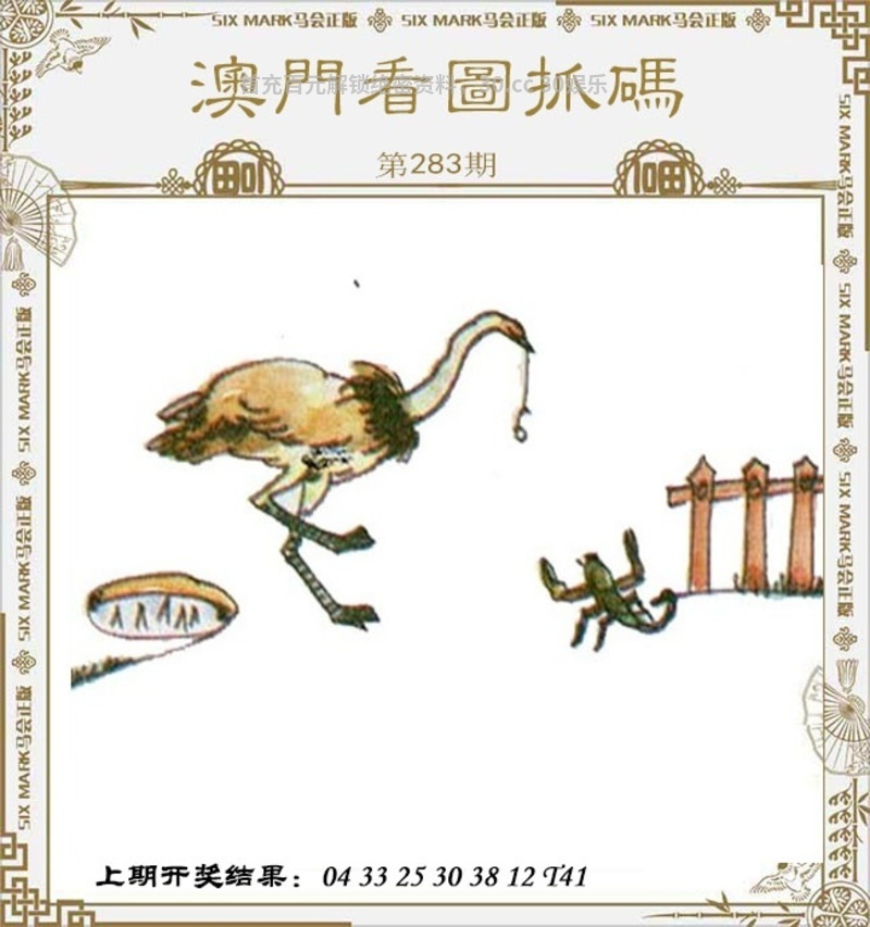 283期:【解抓码图】【开鸡45】 破解图文:图中有一只鸵鸟和一只蝎子,鸵鸟的嘴里叼着一个钩子,而蝎子举着钳子,似乎正在与鸵鸟对峙。 综合九肖:鸡龙猴猪马狗兔羊虎 综合七肖:鸡龙猴猪马狗兔 综合五肖:鸡龙猴猪马 综合三肖:鸡龙猴 综合一肖:鸡 |